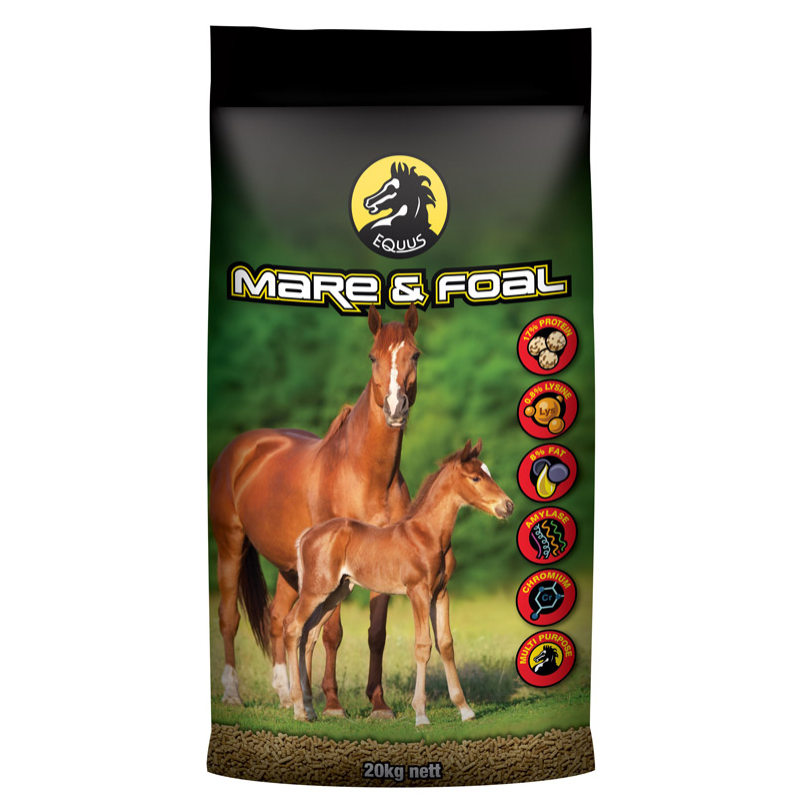 Equus Mare & Foal is an oat free multi-use horse food, suitable for many feeding applications. Apart from being an excellent mare lactation and foal/weaner grower food, it is an excellent conditioning food. It is also an ideal supplement for all active horses and a treat for loved non-working horses.