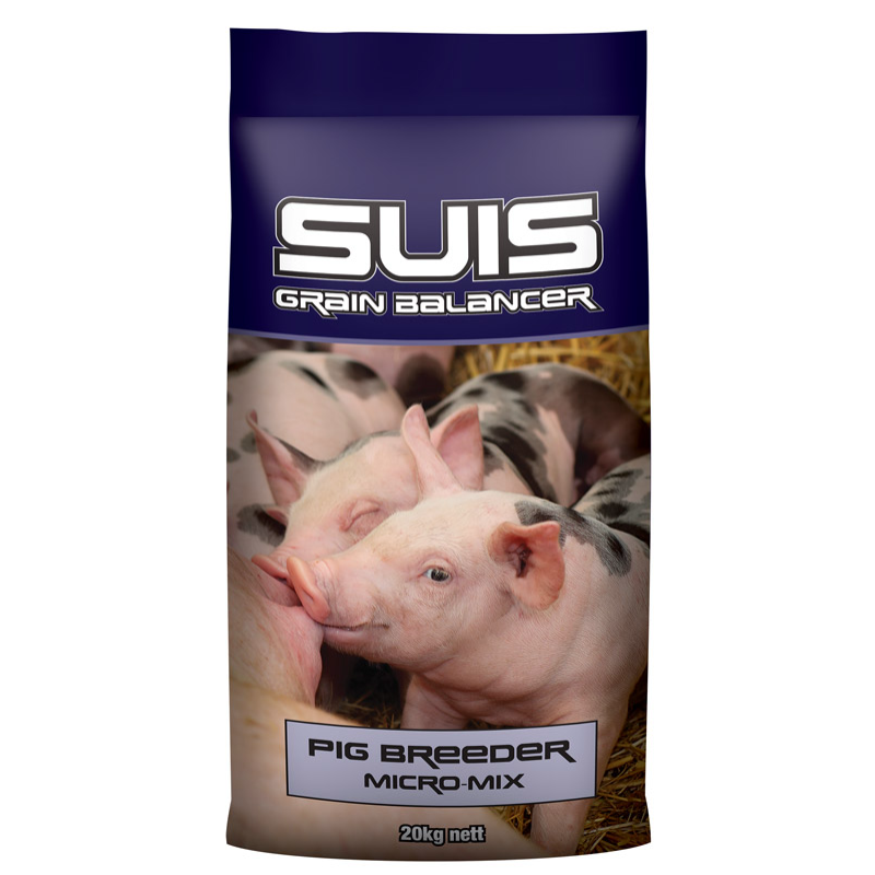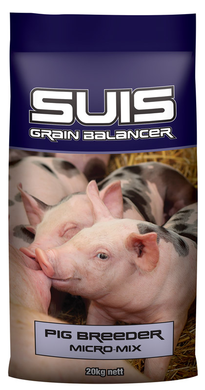 Suis Pig Breeder Micro Mix has been formulated to be mixed with on farm grains at 6% inclusion to provide a balanced breeding diet for sows.